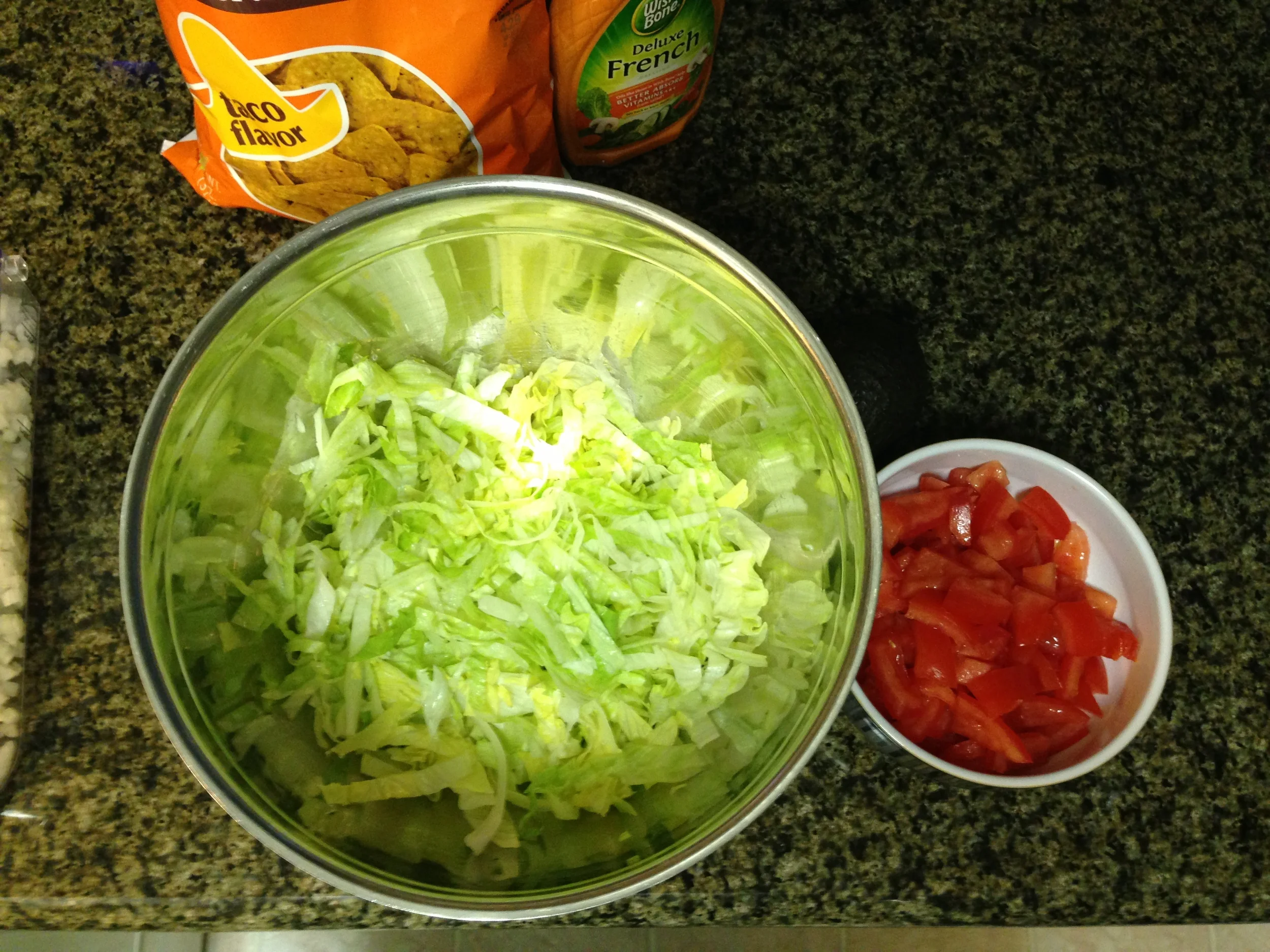 that was browning I prepped the other ingredients. I shredded the lettuce. The recipe doesn't